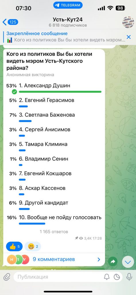 Предвыборная компания в Усть-Куте заиграла новыми красками. Главного конкурента мэра Анисимова на этих выборах, независимого кандидата и депутата районной Думы Светлану Баженову, без объяснения причин уволили с работы. Никаких аргументов при увольнении не привели, хотя претензий по работе к ней не было никаких.